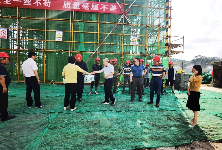 在黃山市南部城鎮(zhèn)群水務(wù)調(diào)度中心項(xiàng)目、黃山生豬定點(diǎn)屠宰加工及配套設(shè)施項(xiàng)目及配套冷鏈項(xiàng)目施工現(xiàn)場(chǎng),城投集團(tuán)總裁黃世穩(wěn)、黨委副書(shū)記汪蓉、副總裁朱愛(ài)民等一行將慰問(wèn)品送到一線職工手中,并和大家親切交談,細(xì)致了解大家的生活工作情況,總裁黃世穩(wěn)叮囑要注意勞逸結(jié)合,合理安排作息時(shí)間,做好防暑降溫工作,確保實(shí)現(xiàn)安全生產(chǎn)。