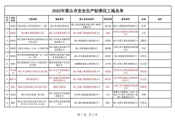 黃山市建工集團(tuán)股份有限公司承建的徽州家園項(xiàng)目、歙縣人民醫(yī)院醫(yī)療能力提升項(xiàng)目、黃山橫江灣凱悅酒店項(xiàng)目、高鐵黟縣東站站前廣場及附屬配套工程、黃山市南部城鎮(zhèn)群水務(wù)調(diào)度中心項(xiàng)目、黃山北海路公交綜合大樓工程榮獲2022年施工質(zhì)量標(biāo)準(zhǔn)化工程和安全生產(chǎn)標(biāo)準(zhǔn)化工地的殊榮。