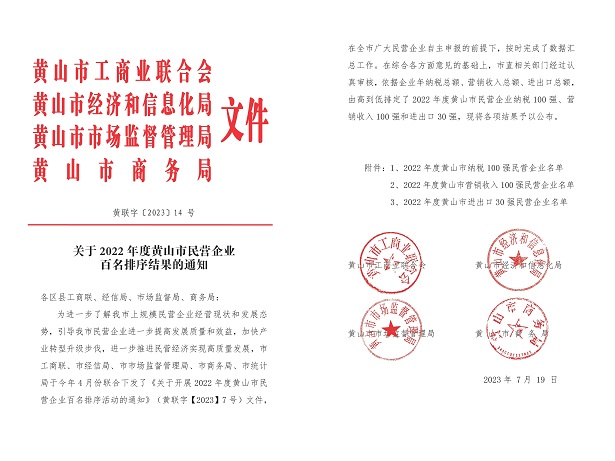 日前,由黃山市工商聯(lián)、市經(jīng)信局、市監(jiān)管局及市商務(wù)局聯(lián)合發(fā)布2022年度黃山市民營(yíng)企業(yè)納稅及營(yíng)銷收入百?gòu)?qiáng)名單公布,黃山建工集團(tuán)連續(xù)多年再次實(shí)力入圍,獲此殊榮!